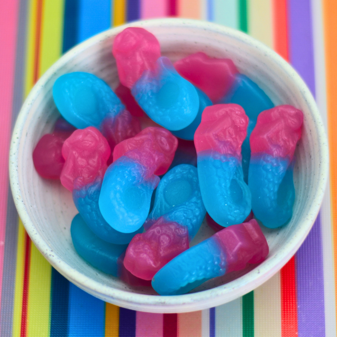 Chewy, colourful, and full of bubblegum flavour, our vegan bubblegum mermaids are a fun, ocean-inspired sweet that everyone can enjoy. Made with plant-based ingredients and completely free from gelatine, they have a soft, juicy chew and that classic sweet bubblegum taste. Packed in our reusable bags, they’re perfect for sharing, gifting, or adding a splash of colour to your pick and mix jars.